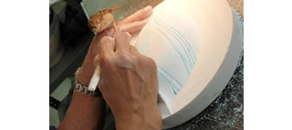同心円の形状やフォルムにやらかさが欲しい形状などは手作業で石膏を削りだしていき